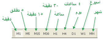 -كل ربع ساعة 15 Minute : أي يمكنك أن تعرف كم كان سعر العملة قبل ربع ساعة من الآن لعدة أرباع ساعة سابقة .